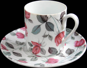 | jogo de café | Porcelana Saler | déc. 1950 decoração com decalque chintz | coleção Fábio Carvalho |